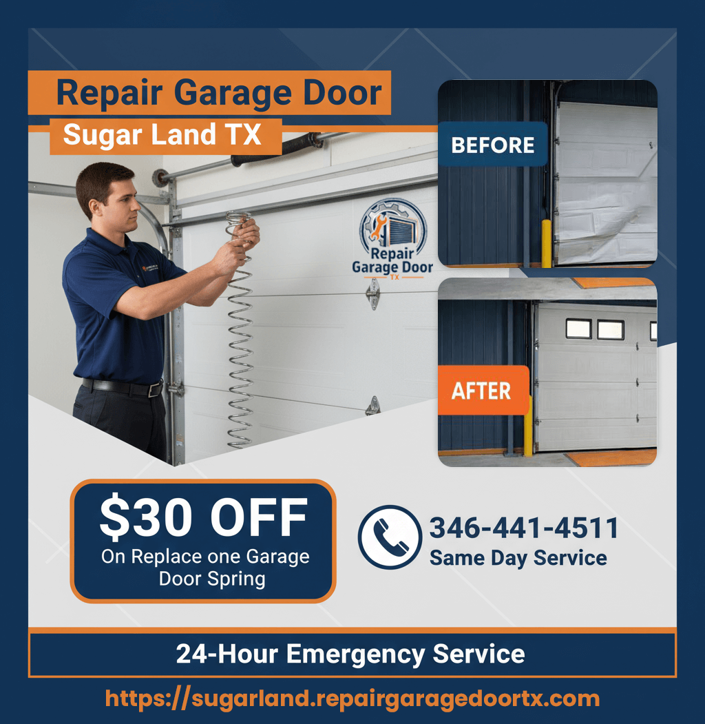 Sectional doors are complex systems made up of springs, cables, tracks, panels and electronic controls that must work together correctly. When one component fails, it often affects the entire mechanism. Homeowners searching for Repair Garage Door Sugar Land TX are usually dealing with doors that feel unstable, noisy or unreliable during daily use.